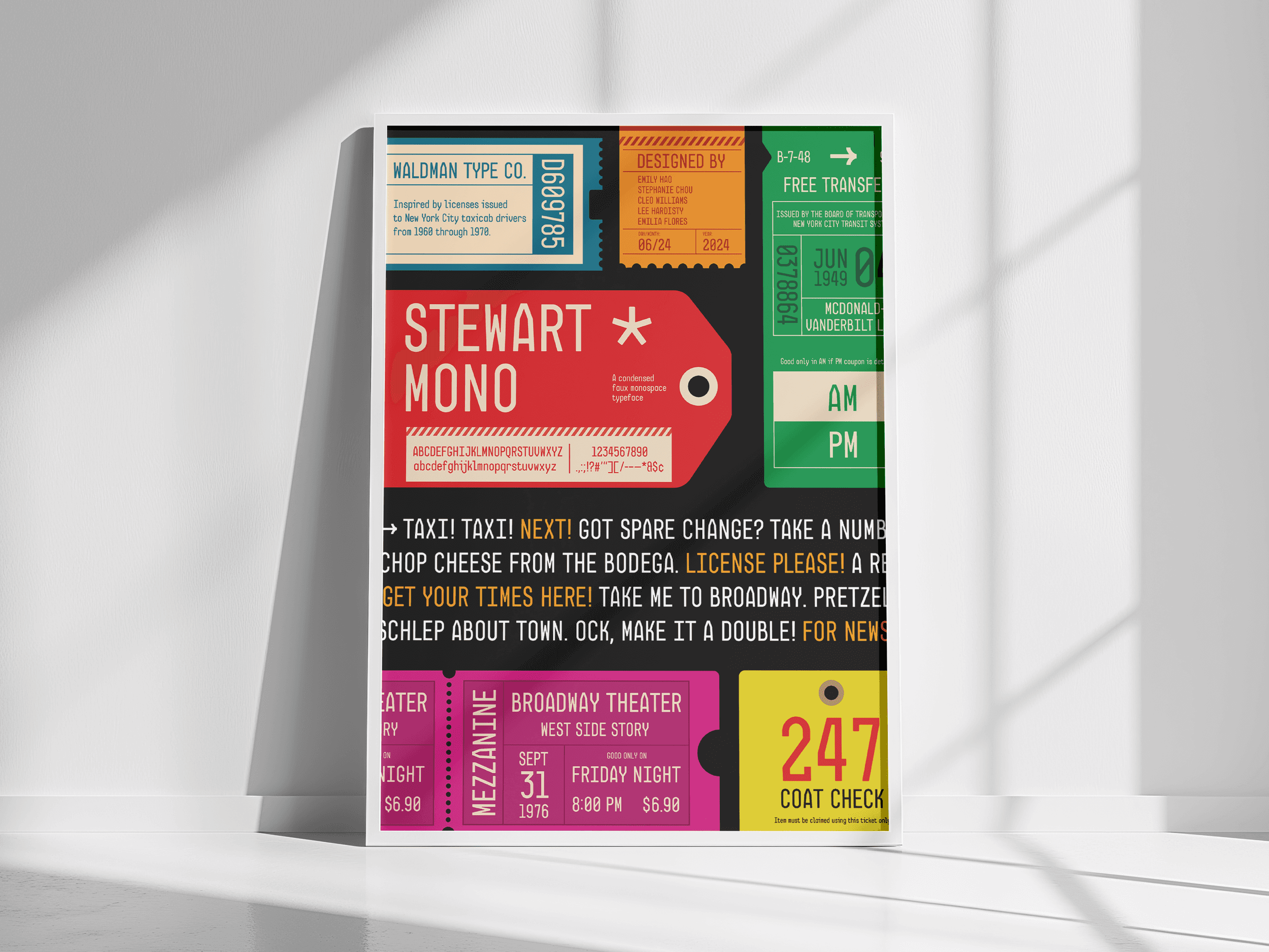 A “fauxnospaced” typeface inspired by NYC Taxicab Driver’s licenses from the late 1960s and early 1970s