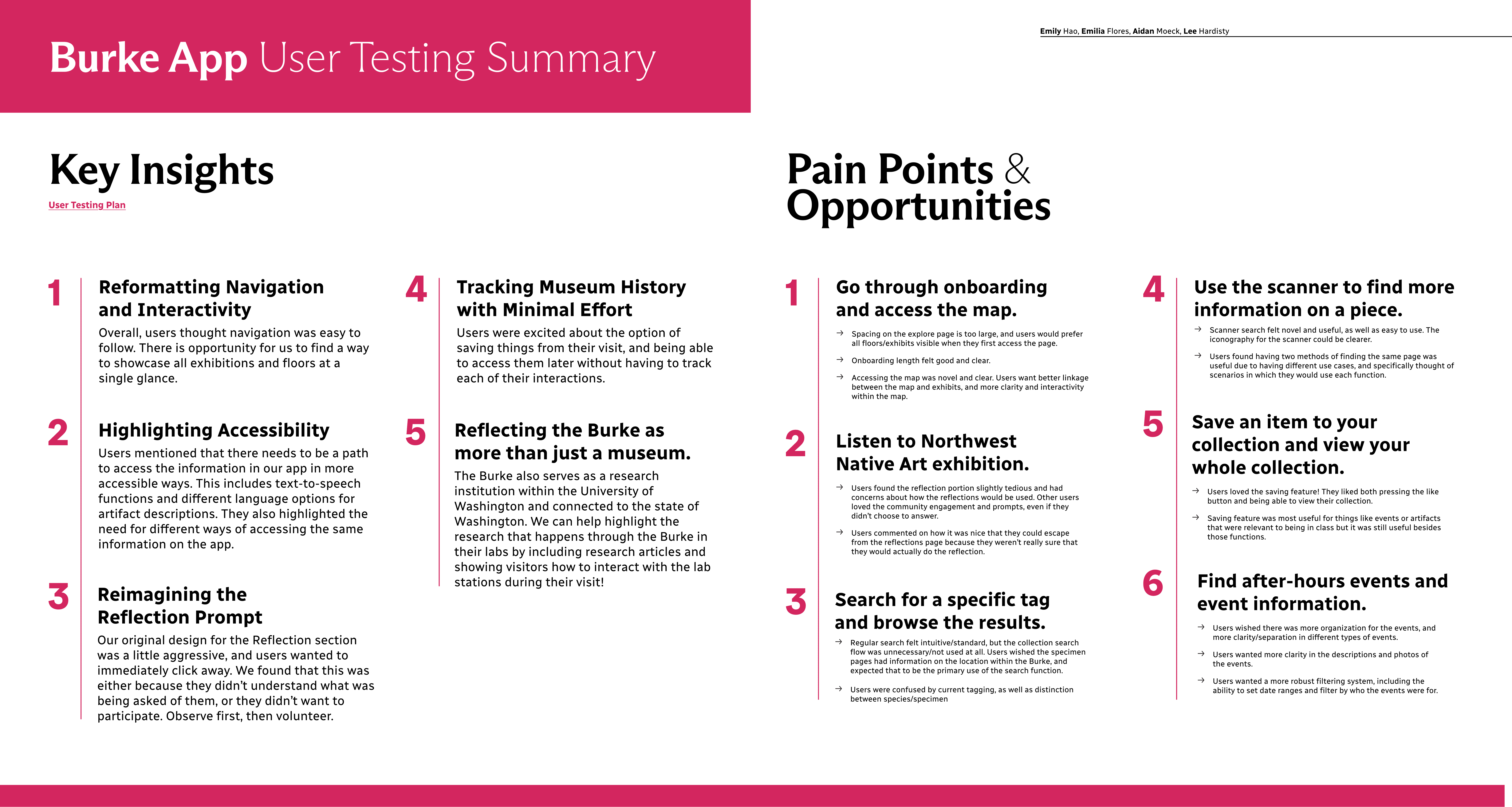 Once my team and I identified the Burke Museum as our app topic, we began our process by conducting a variety of interviews with employees, active visitors, and prospective visitors of the museum. With our interviews, we aimed to figure out exactly what the needs of the users would be across boundaries of age, knowledge, and experience.
