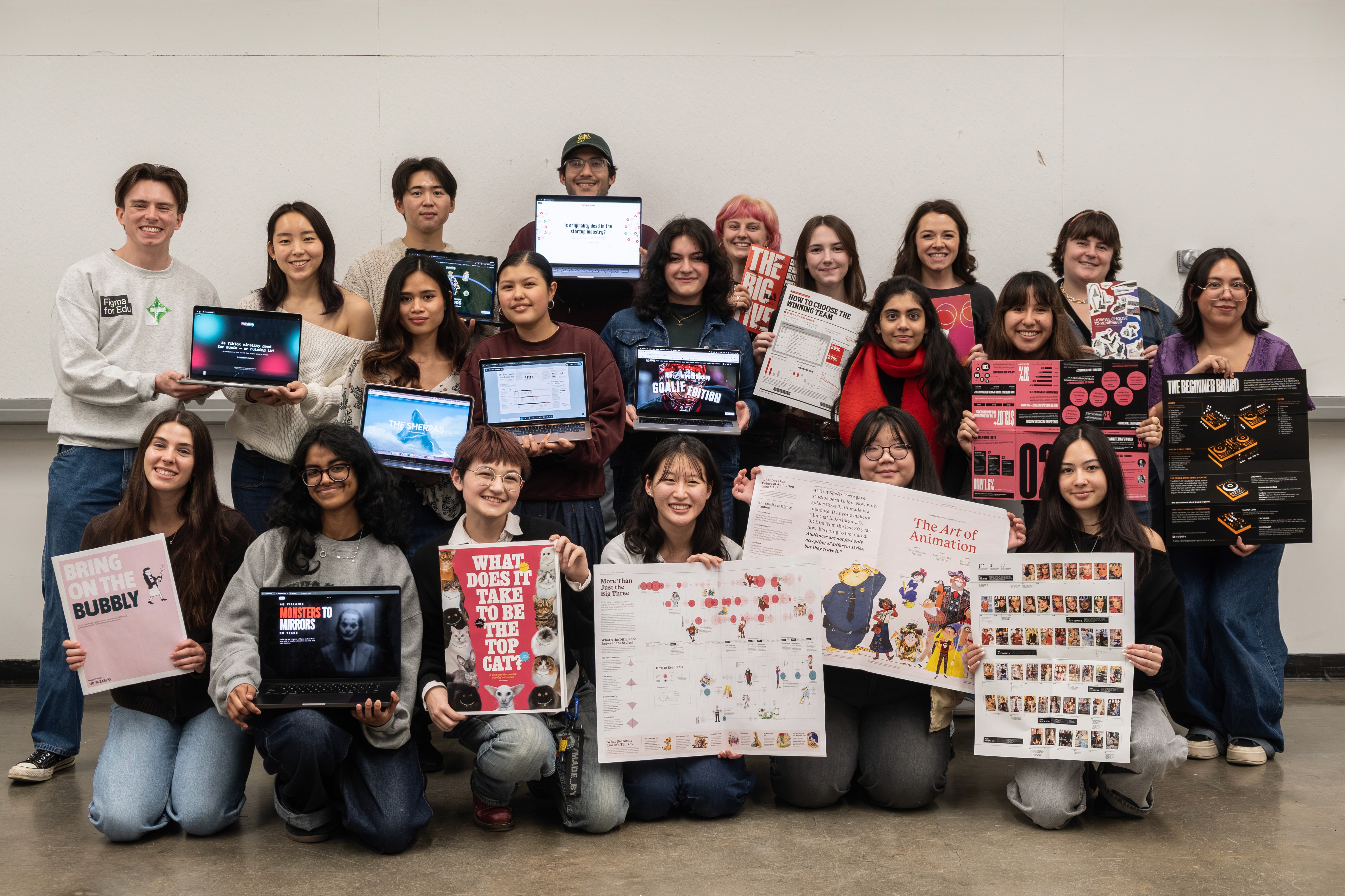 My entire Information Design class and their finals! I'm in the middle with my computer.